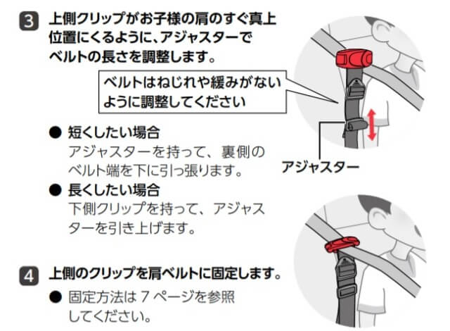 なので、使いかたは「ただしいシートベルトの付けかたになるように調整する」ことを意識すれば、正しい使いかたになります。